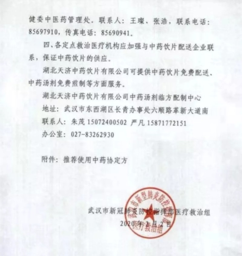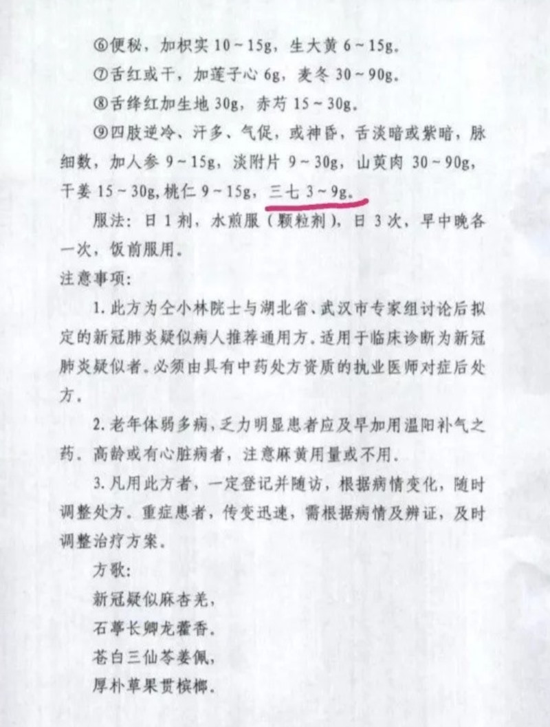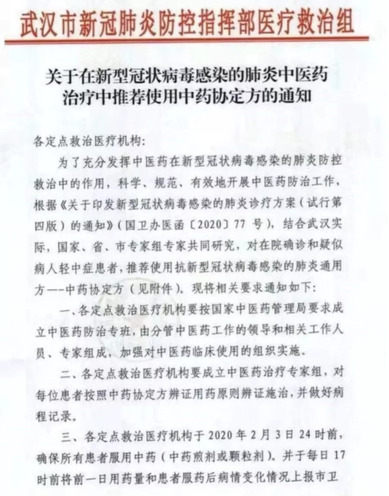三七被武漢市新冠肺炎防控指揮部醫(yī)療救治組