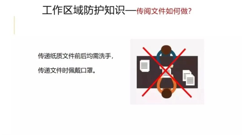 傳遞紙質(zhì)文件前后均需洗手,傳閱文件時(shí)佩戴口罩。