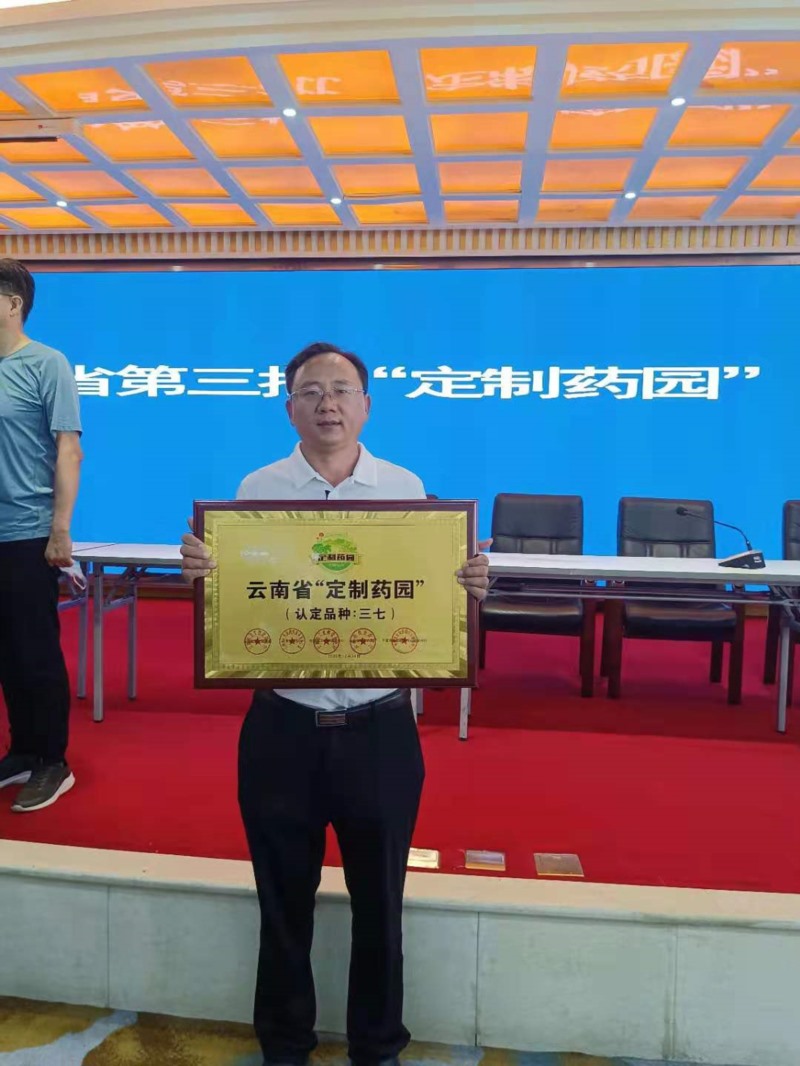 6月16日,在昆明蓮花賓館舉行了云南省“定制藥園”授牌儀式,云南七丹藥業(yè)股份有限公司自建三七規(guī)范化種植基地被認定為云南省“定制藥園”,并授予了稱號。
