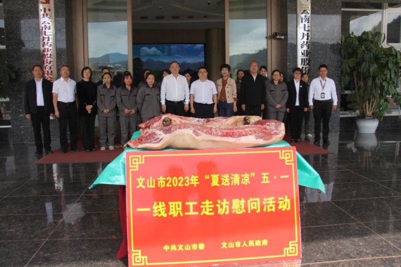 “五一”國際勞動節(jié)前夕,文山州委常委、市委書記蔣俊等領(lǐng)導(dǎo)一行帶著對堅(jiān)守崗位一線勞動者的關(guān)心和掛念,來到云南七丹藥業(yè)股份有限公司,向奮戰(zhàn)在一線、耕耘在七丹藥業(yè)的勞動者們,致以崇高敬意并送來誠摯的問候和節(jié)日的祝福。