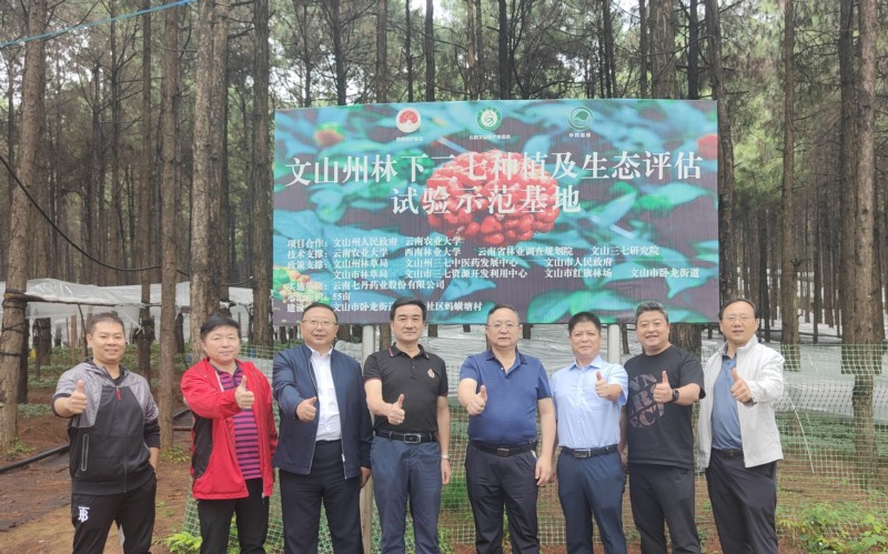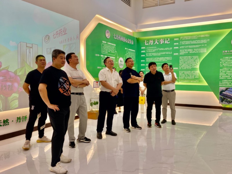 林董事長(zhǎng)等企業(yè)家一行在七丹公司董事長(zhǎng)楊朝文的陪同下,先后參觀了七丹三七文化產(chǎn)業(yè)園、三七產(chǎn)品展示中心,并深入七丹藥業(yè)位于文山市臥龍街道林下三七種植試驗(yàn)示范基地、德厚鎮(zhèn)樂(lè)竜三七種植基地,實(shí)地考察了解了七丹公司三七種植情況。