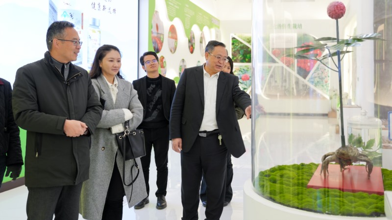 李鈺董事長一行在七丹藥業(yè)董事長楊朝文、常務(wù)副總裁買毅波、副總裁邱治皓的陪同下參觀了七丹三七文化產(chǎn)業(yè)園歷史文化展館、三七種植展示基地、檢測中心及產(chǎn)品展示區(qū)。