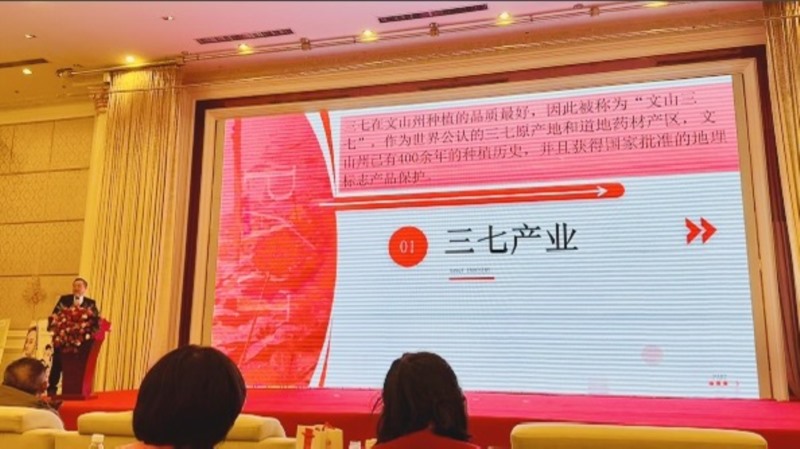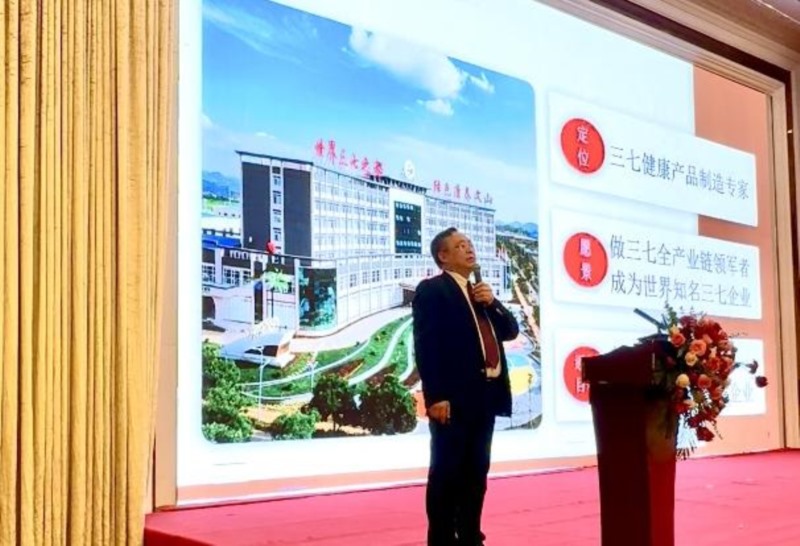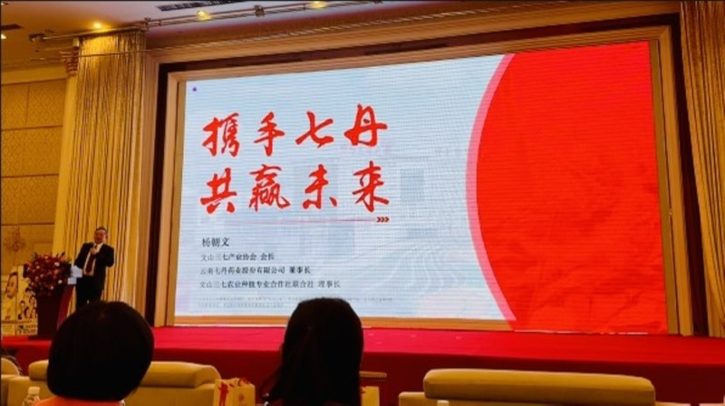 在高峰論壇上七丹藥業(yè)董事長楊朝文作了“攜手七丹 共贏未來"的主題演講,介紹了文山三七產(chǎn)業(yè)發(fā)展、優(yōu)勢、現(xiàn)狀及前景,并就七丹藥業(yè)“三七健康產(chǎn)品制造專家”定位,七丹藥業(yè)在三七道地產(chǎn)區(qū)文山開展三七種植技術(shù)創(chuàng)新、三七健康產(chǎn)品創(chuàng)新研發(fā)、加工生產(chǎn)、健全產(chǎn)品全程溯源體系、品牌打造、2024年大單品等方面進行了交流分享。