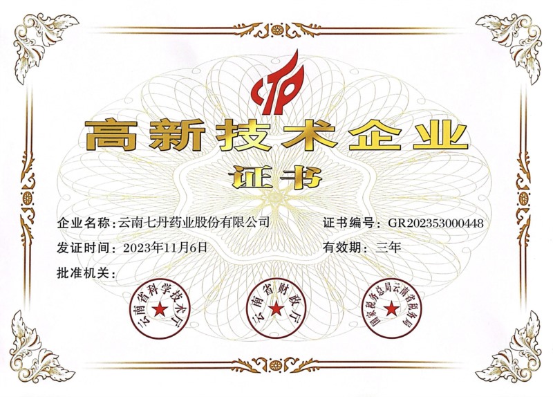 “高新技術(shù)企業(yè)”,是指在國家頒布的《國家重點支持的高新技術(shù)領(lǐng)域》持續(xù)進行研究開發(fā)與技術(shù)成果轉(zhuǎn)化,形成企業(yè)核心自主知識產(chǎn)權(quán),并以此為基礎(chǔ)開展經(jīng)營活動,將重大高新技術(shù)成果轉(zhuǎn)化成生產(chǎn)力的技術(shù)水平,屬于國內(nèi)領(lǐng)先或國際先進的企業(yè)。在國家級的資質(zhì)認(rèn)證中,高新技術(shù)企業(yè)是科技型企業(yè)最具含金量的榮譽之一,也是中國科技型企業(yè)最高的榮譽之一。這是七丹藥業(yè)已第五次通過復(fù)審認(rèn)定,標(biāo)志著公司在產(chǎn)品技術(shù)含量、科技創(chuàng)新及成果轉(zhuǎn)化等方面又上了一個新的臺階。