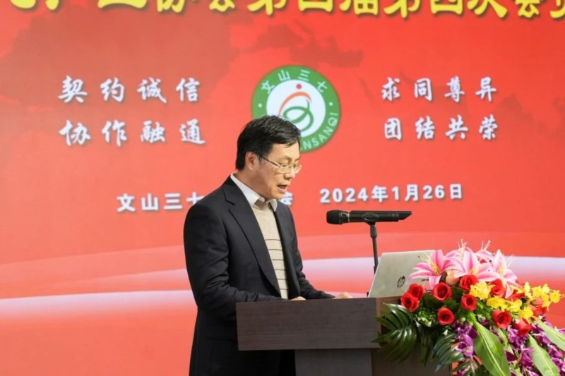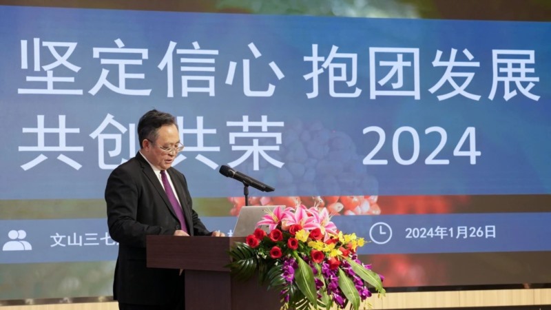 文山三七產(chǎn)業(yè)協(xié)會(huì)會(huì)長(zhǎng)、七丹藥業(yè)董事長(zhǎng)楊朝文作了2023年度工作報(bào)告,總結(jié)了協(xié)會(huì)過(guò)去一年的主要工作,分析了存在的主要問(wèn)題及困難,就2024年協(xié)會(huì)工作作了發(fā)言。楊會(huì)長(zhǎng)表示協(xié)會(huì)全體同仁要堅(jiān)定信心、同心同向、形成“擰成一股繩、凝成一股力、聚成一條心、共下一盤棋”的共識(shí),成為推進(jìn)以三七為重點(diǎn)的中醫(yī)藥產(chǎn)業(yè)高質(zhì)量發(fā)展中不可或缺的中堅(jiān)力量。
