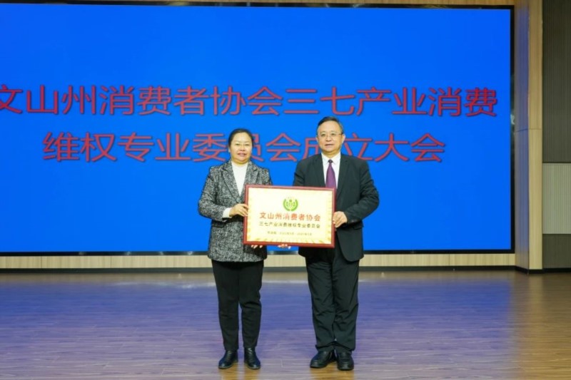 文山州市場(chǎng)監(jiān)督管理局黨組書記、局長(zhǎng)王毅為協(xié)會(huì)及相關(guān)人員頒發(fā)文山州消費(fèi)者協(xié)會(huì)三七產(chǎn)業(yè)消費(fèi)維權(quán)專業(yè)委員會(huì)牌匾及聘書,并對(duì)三七產(chǎn)業(yè)的監(jiān)管及發(fā)展作了講話。她提出要唱好品牌性,當(dāng)好潤(rùn)滑劑,做好連心橋,樹好風(fēng)向標(biāo)這四點(diǎn)建議,下一步將在建立三七消費(fèi)維權(quán)專委會(huì)的基礎(chǔ)上,把云南七丹藥業(yè)股份有限公司打造成全州消費(fèi)教育的示范基地,進(jìn)一步擦亮文山三七的精致招牌,共同推動(dòng)和引領(lǐng)文山三七產(chǎn)業(yè)高質(zhì)量的發(fā)展。