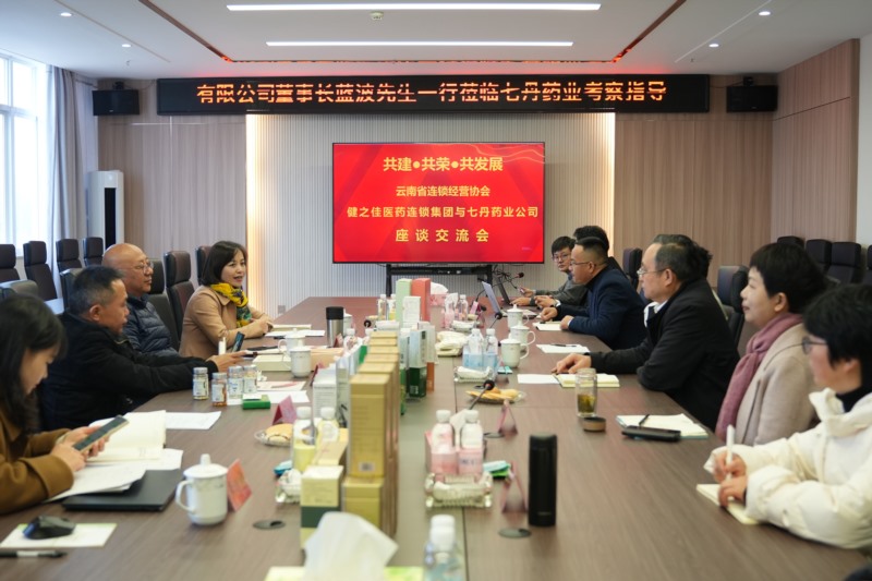 1月28日,云南省連鎖經(jīng)營協(xié)會(huì)會(huì)長(zhǎng)、健之佳醫(yī)藥連鎖集團(tuán)股份有限公司董事長(zhǎng)藍(lán)波,云南省連鎖經(jīng)營協(xié)會(huì)執(zhí)行會(huì)長(zhǎng)、健之佳醫(yī)藥連鎖集團(tuán)副總裁胡渝明,健之佳醫(yī)藥連鎖集團(tuán)全國健康食品采購副總監(jiān)張洪巖、全國中藥采購部副經(jīng)理李瓊梅,云南省連鎖經(jīng)營協(xié)會(huì)秘書長(zhǎng)陳曉暉等一行到七丹藥業(yè),與七丹藥業(yè)部分中高層領(lǐng)導(dǎo)進(jìn)行座談交流深化合作。