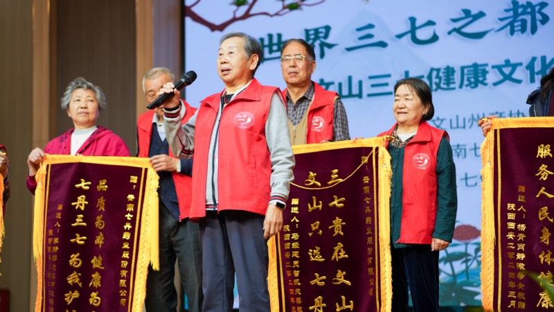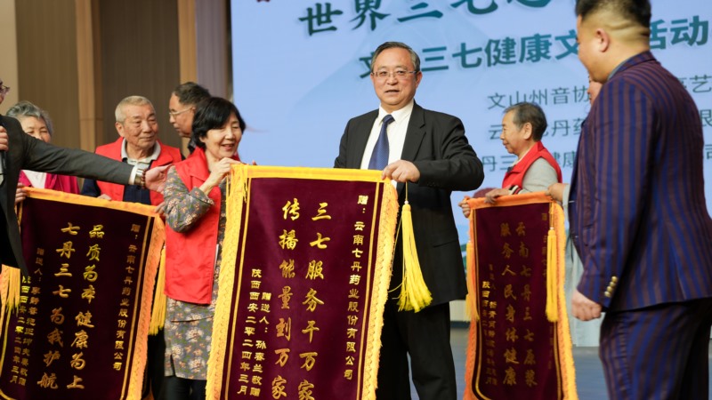 晚會上,七丹藥業(yè)的省外消費者代表紛紛向七丹藥業(yè)董事長楊朝文贈送錦旗,感謝七丹藥業(yè)為消費者提供安全、道地、優(yōu)質(zhì)、精純、高效的三七產(chǎn)品,幫助他們身體更健康、生活更美好。這些錦旗,不僅是對七丹藥業(yè)的信任和認可,更是對七丹藥業(yè)的肯定和鼓勵。