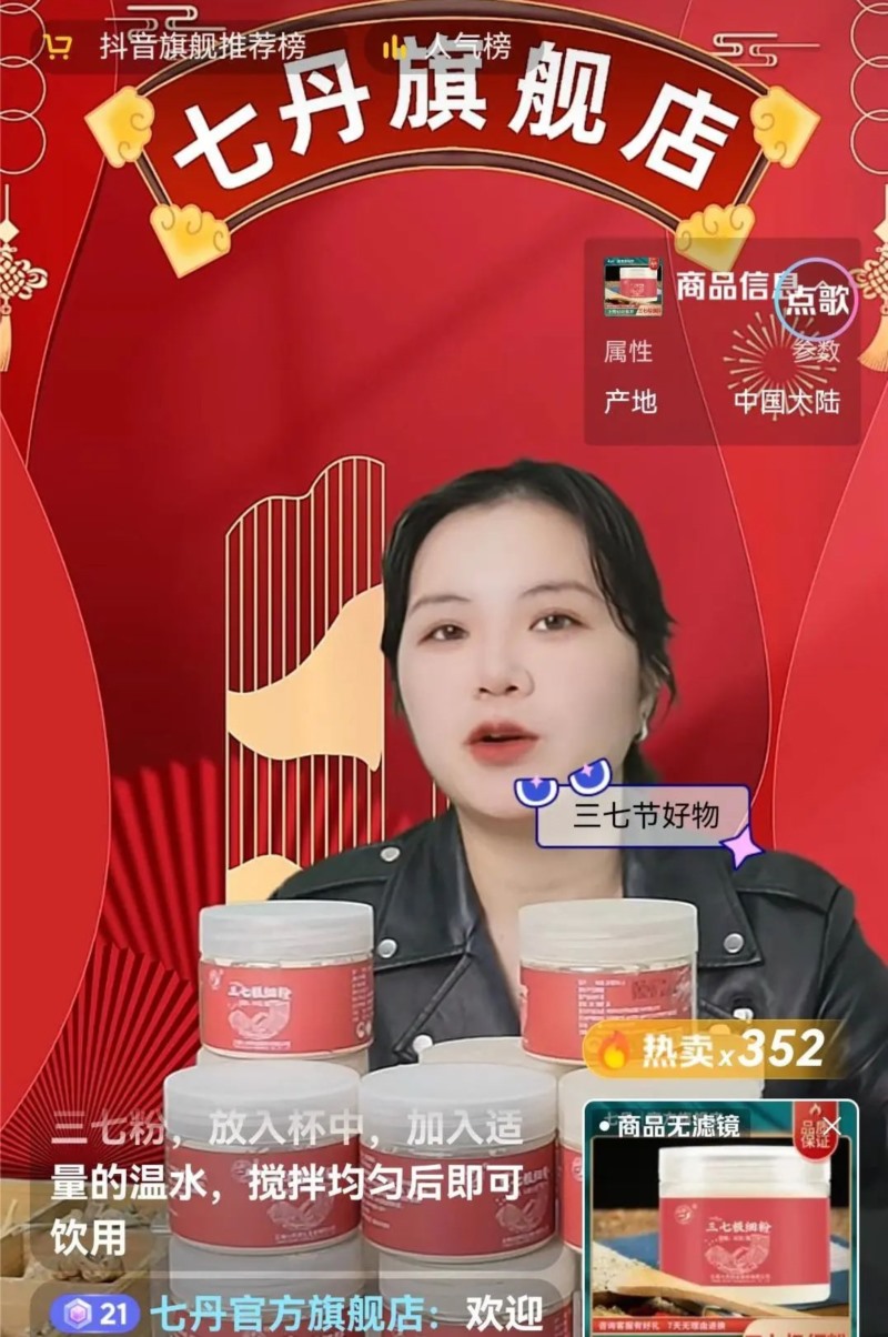 “七丹官方旗艦店”團隊來自云南七丹藥業(yè)的新零售部門,自2020年成立來,新零售部積極拓展自媒體直播帶貨渠道,普及文山三七健康知識。已完成300余場直播,吸引千萬觀眾,銷售額近5000萬元。匯同公司研發(fā)部、生產(chǎn)部開發(fā)出10余款新產(chǎn)品,滿足年輕消費者需求。秉承“一切以客戶為中心”的宗旨,提升公司品牌形象和消費者體驗,為消費者提供了更豐富的三七健康產(chǎn)品選擇。