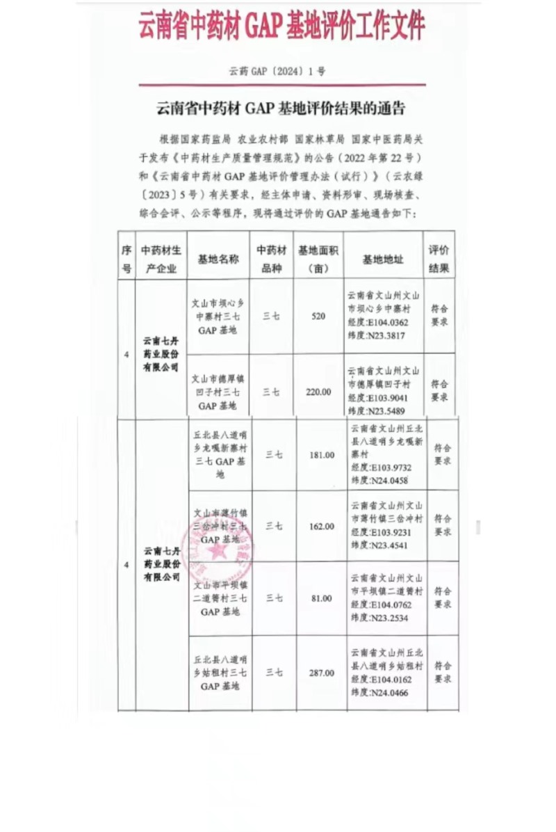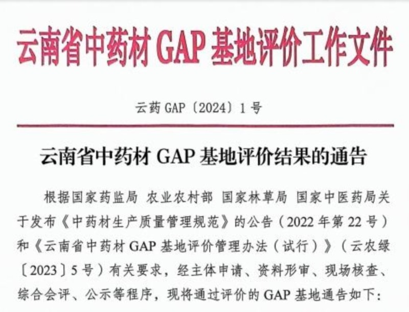 近日,根據(jù)《國家藥監(jiān)局 農(nóng)業(yè)農(nóng)村部 國家林草局 國家中醫(yī)藥局關(guān)于發(fā)布〈中藥材生產(chǎn)質(zhì)量管理規(guī)范〉的公告》(2022年第22號)和《云南省中藥材GAP基地評價(jià)管理辦法(試行)》(云農(nóng)綠〔2023〕5號)有關(guān)要求,經(jīng)主體申請、資料形審、現(xiàn)場核查、綜合會評等程序,七丹藥業(yè)6個(gè)三七種植基地順利通過云南省中藥材GAP基地符合性評價(jià)。