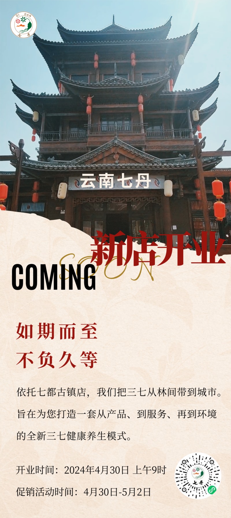 如期而至 不負等待|4月30日 七都古鎮(zhèn)七丹三七產(chǎn)品專賣店等你來體驗!