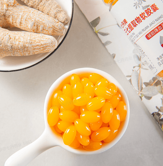 以三七提取物、大豆油、蜂蠟、明膠、甘油、純化水、檸檬黃等為主要原料制成,能夠輔助降血脂。