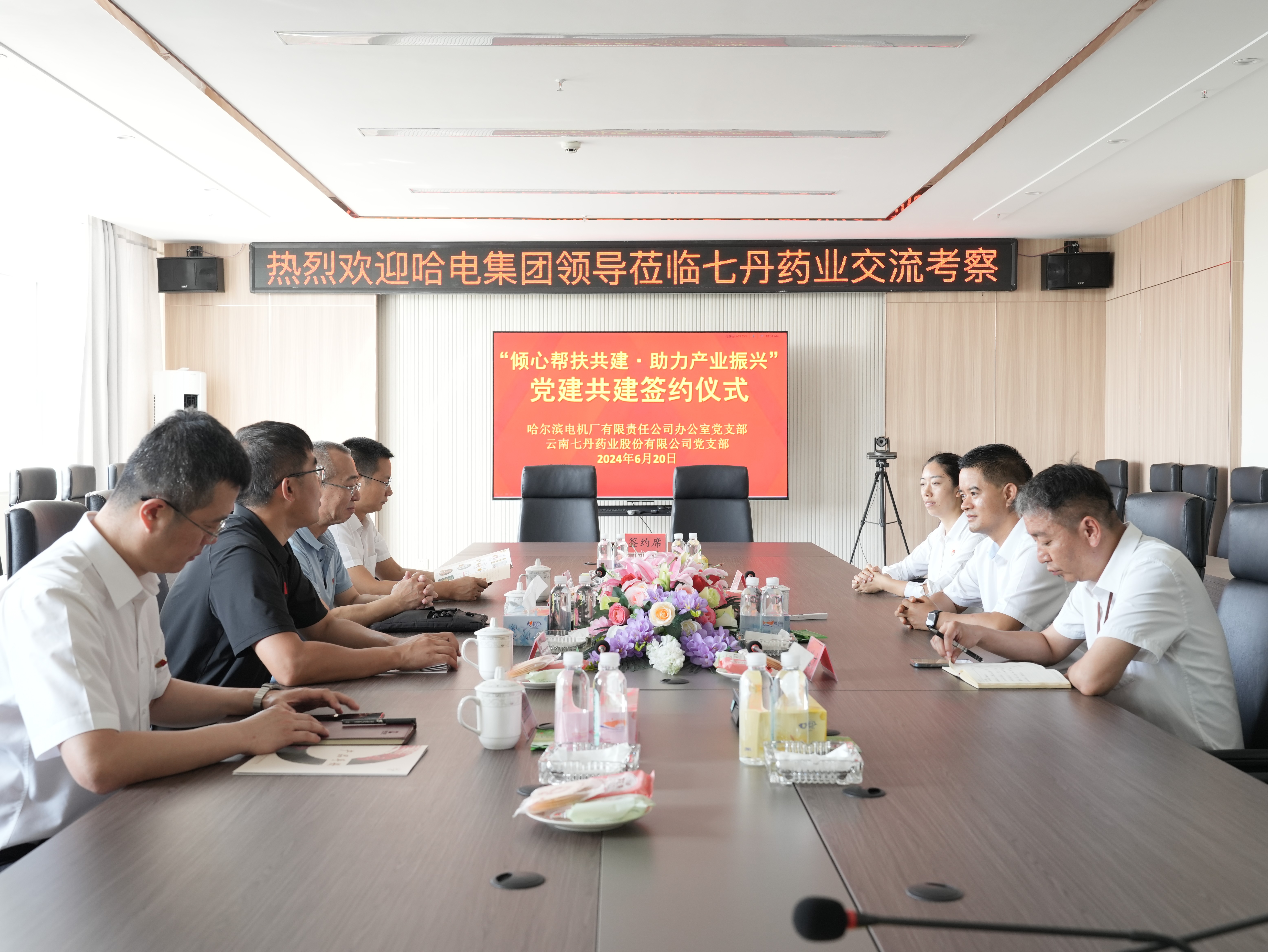 6月20日,哈爾濱電機(jī)廠有限責(zé)任公司黨委副書記、工會主席李衛(wèi)東率哈電集團(tuán)調(diào)研組在文山市副市長李祖良,市委常委、市委組織部部長牟恩健的陪同下到七丹藥業(yè)交流考察并簽訂黨建共建合作協(xié)議。公司黨支部副書記、副總裁、工會主席王海維陪同考察。