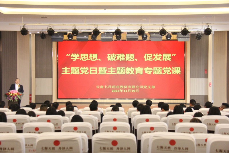 11月19日,七丹藥業(yè)黨支部書記、董事長楊朝文作“學思想、破難題、促發(fā)展”主題教育專題黨課培訓,公司中高層管理人員及部分骨干員工100余人參加。